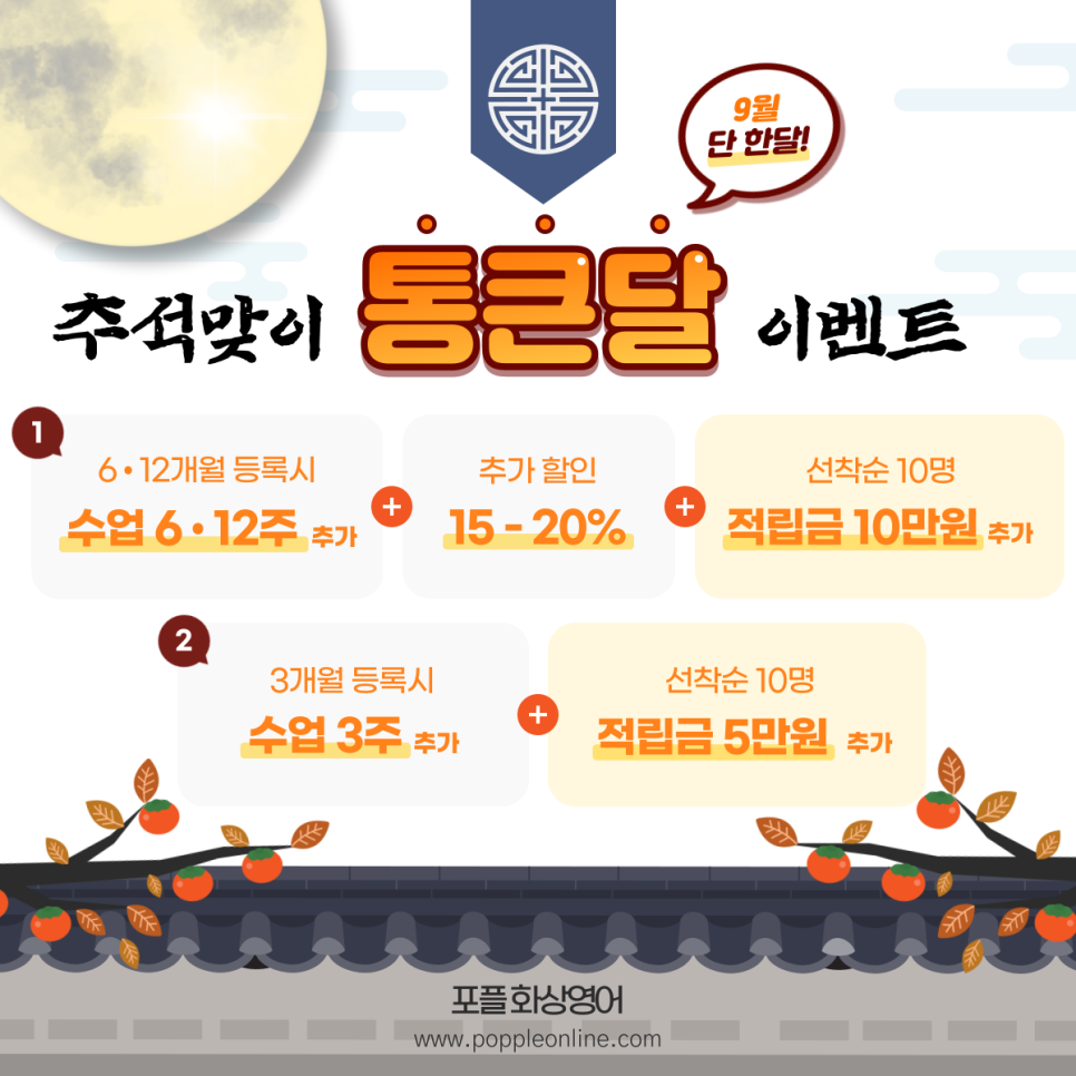 포플 화상영어와 함께 영어 공부하면서 가을의 시작인 9월의 특급 프로모션도 놓치지 마세요!