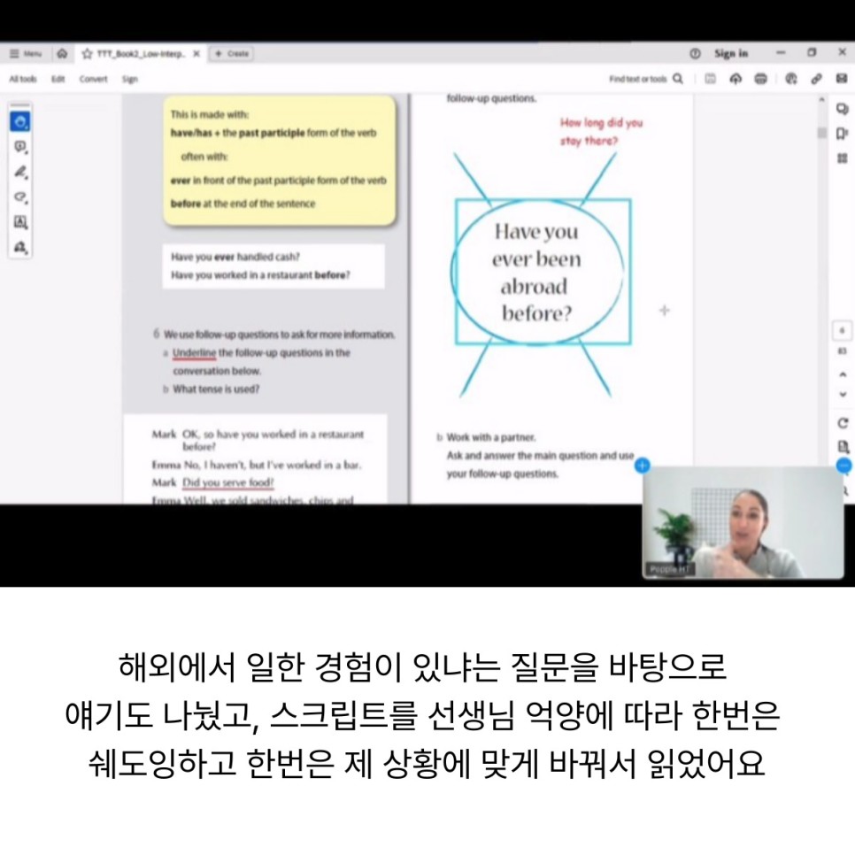 얘기도 나눴고, 스크립트를 선생님 억양에 따라 한번은
