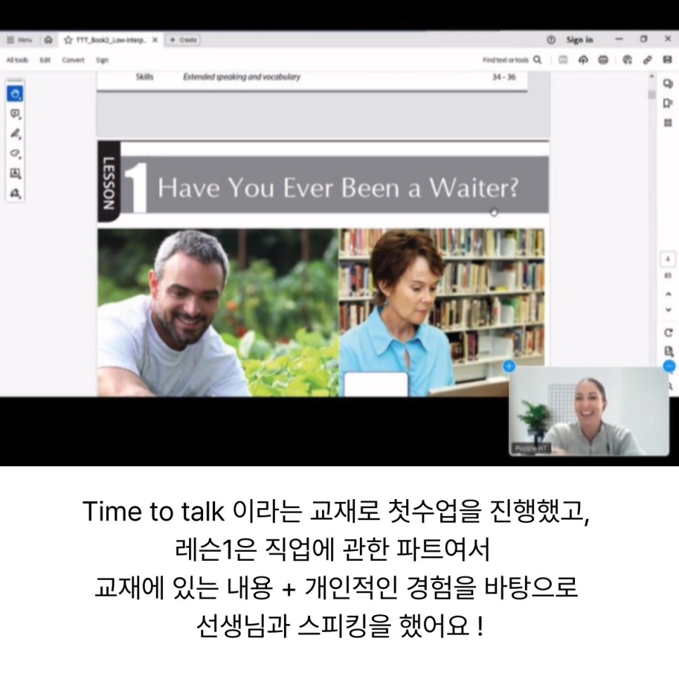 Time to talk 이라는 교재로 첫수업을 진행했고,