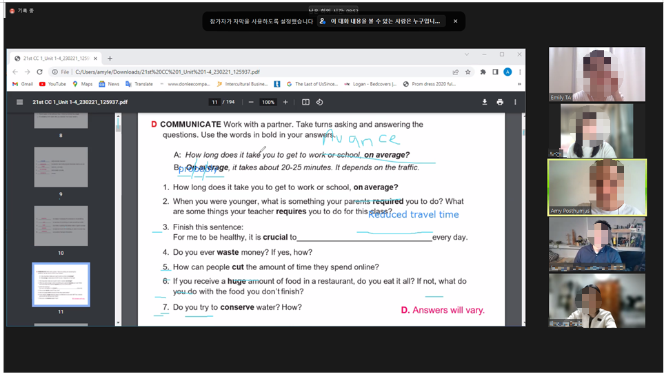 모든 수업에는 원어민 주 강사님과 한국인 보조 선생님이 함께 하시고
