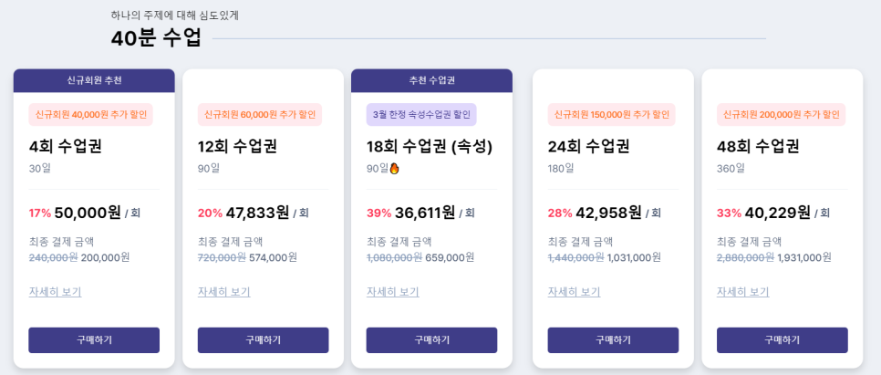 수업권을 결제하게 되어 있어요.