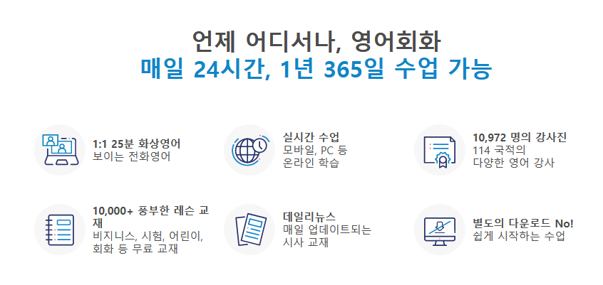 화상 영어의 경우에는 실시간 피드백을 장점으로 내세우는 곳들이 참 많아요.